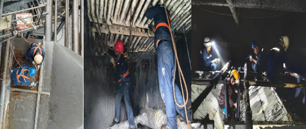 焦化脫硫環(huán)境除塵灰倉的上下樓層墻壁長(cháng)期受設備疏灰影響,四周墻面定置衛生難以清理,無(wú)法滿(mǎn)足業(yè)主方的環(huán)保驗收要求。為不影響業(yè)主方的環(huán)保驗收工作,生產(chǎn)部主動(dòng)帶領(lǐng)生產(chǎn)班組員工在國慶中秋雙節期間對環(huán)境除塵灰倉的上下樓層墻面及設備進(jìn)行刷漆亮化。經(jīng)過(guò)兩天的努力,灰倉區域煥然一新,順利通過(guò)了業(yè)主方的環(huán)保評級驗收。